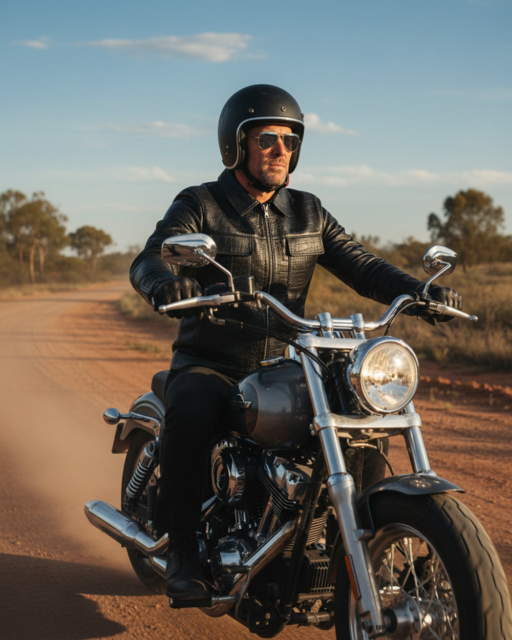A leather jacket should sit clean on the shoulders, hug the chest lightly, and allow comfortable movement. Sleeves should reach the wrist bone. If you plan to layer a knit, consider one size up.