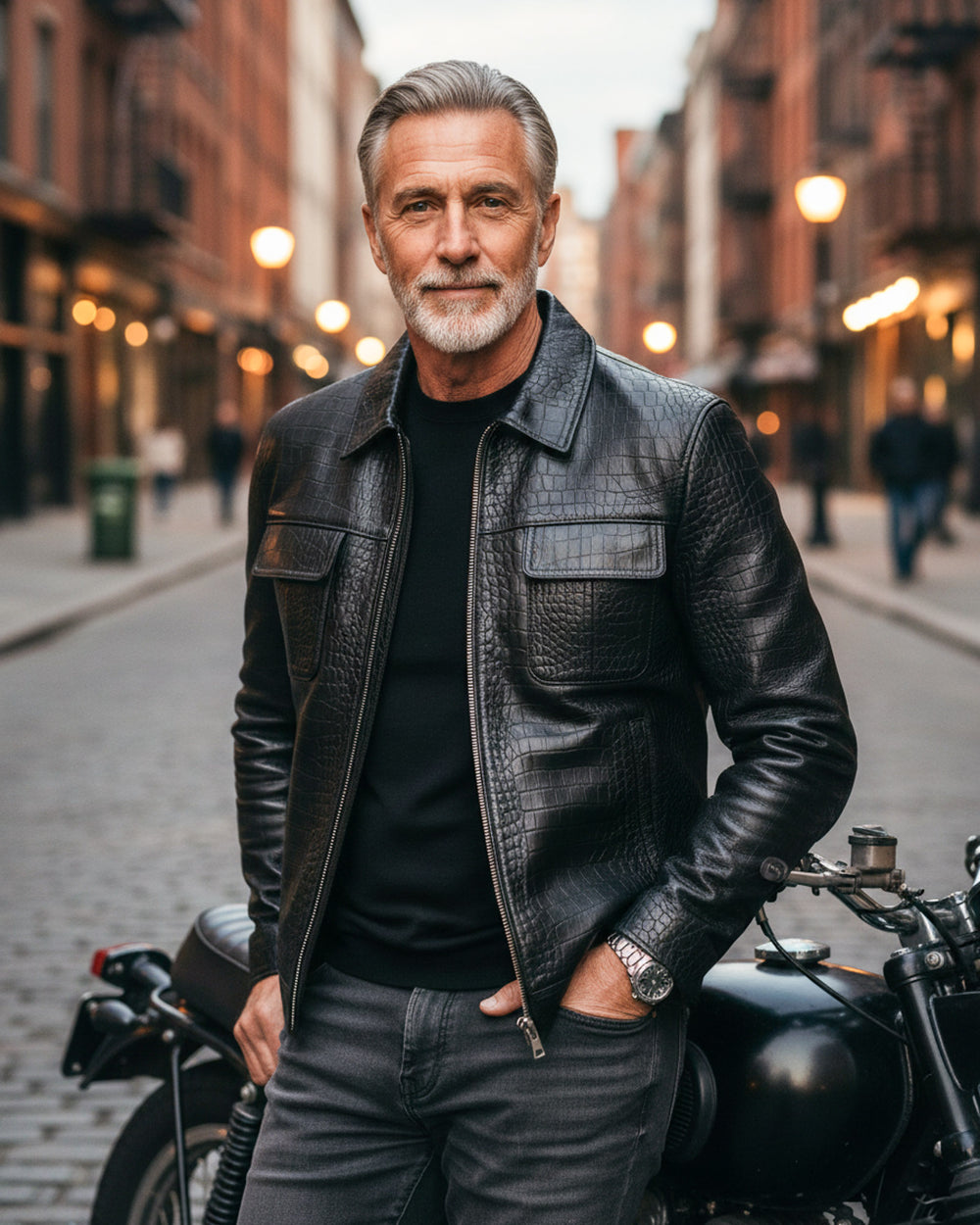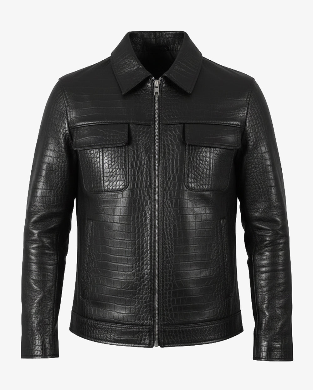 Bergamo - Men’s Black Crocodile-Embossed Leather Jacket