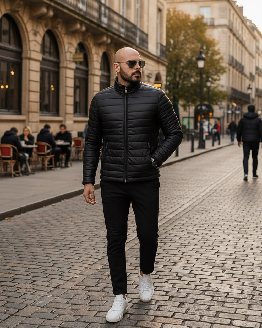 A leather jacket should sit clean on the shoulders, hug the chest lightly, and allow comfortable movement. Sleeves should reach the wrist bone. If you plan to layer a knit, consider one size up.