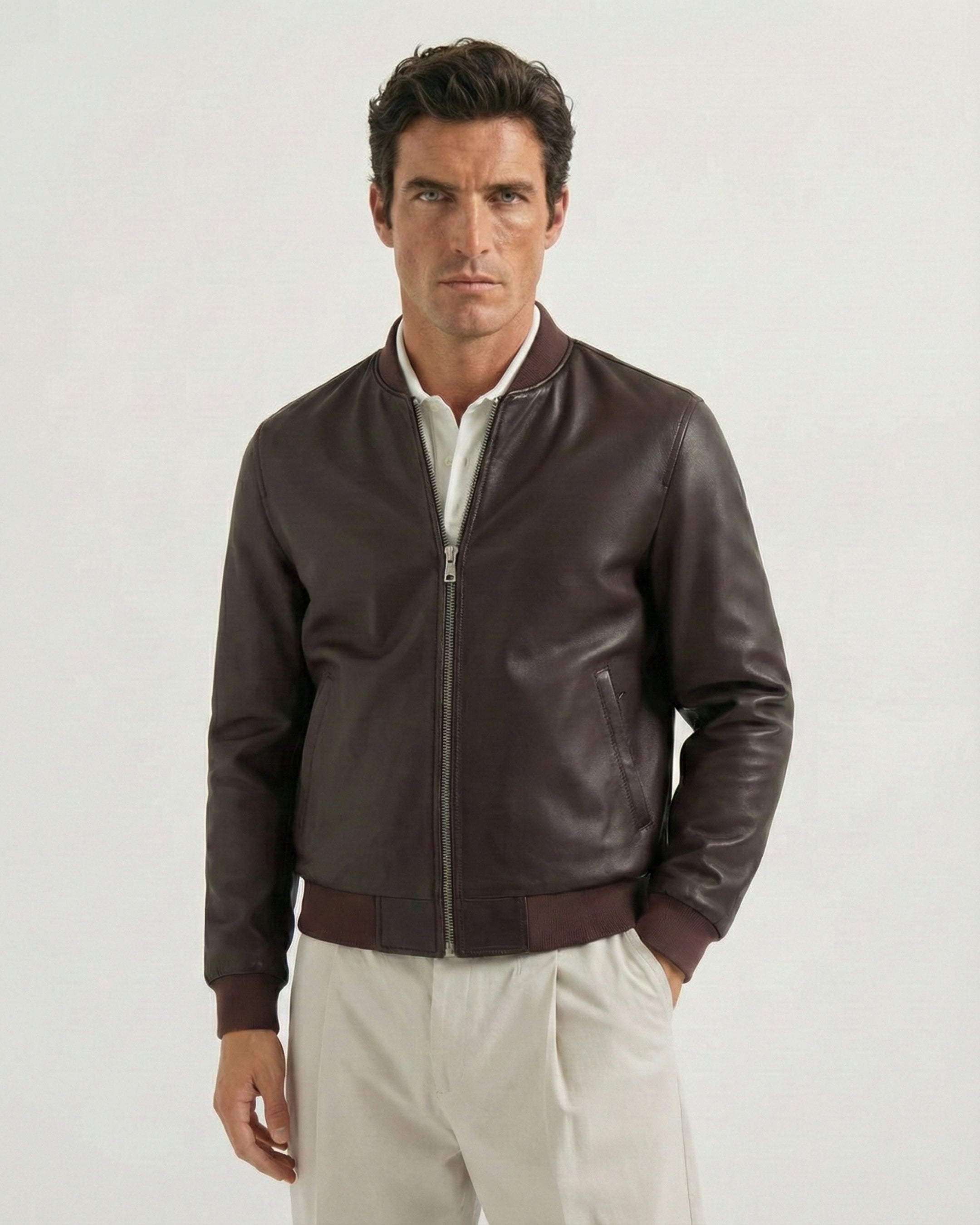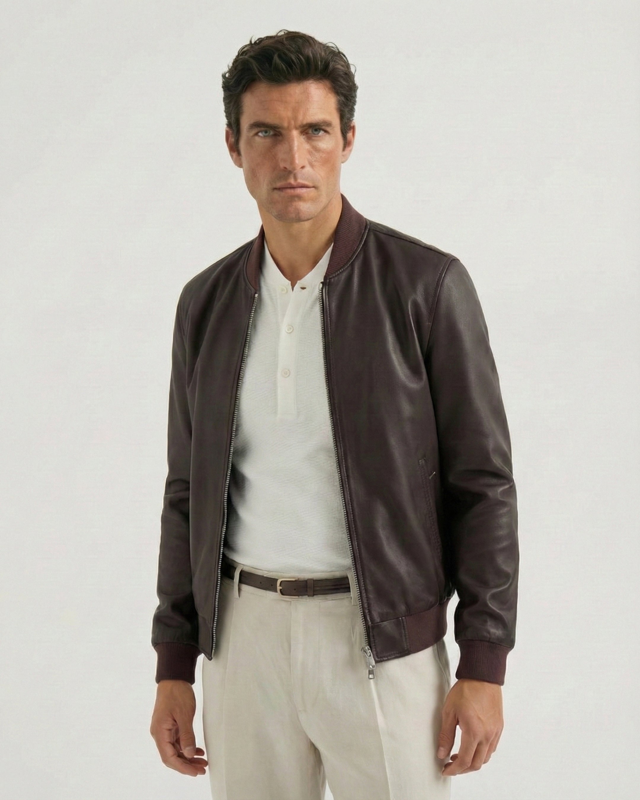 Cremona – Classic Brown Leather Bomber Jacket for Men