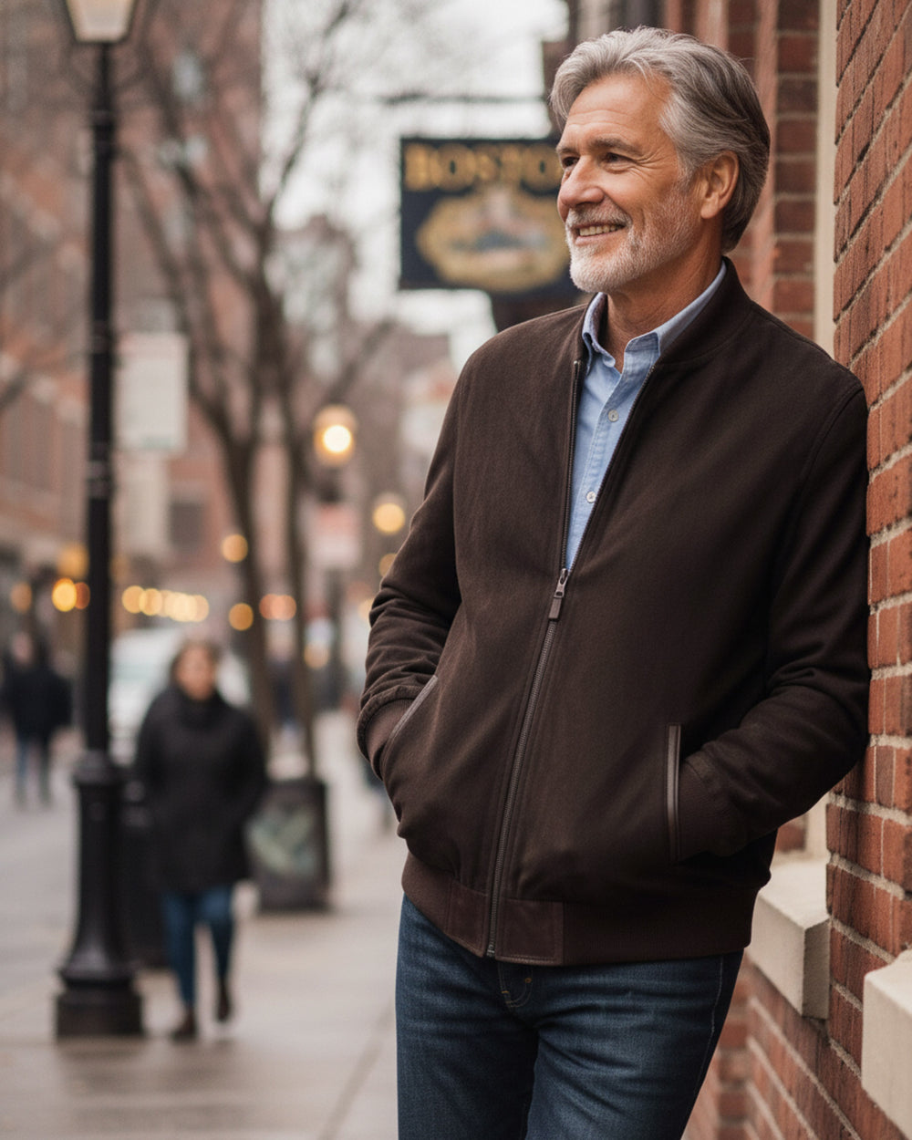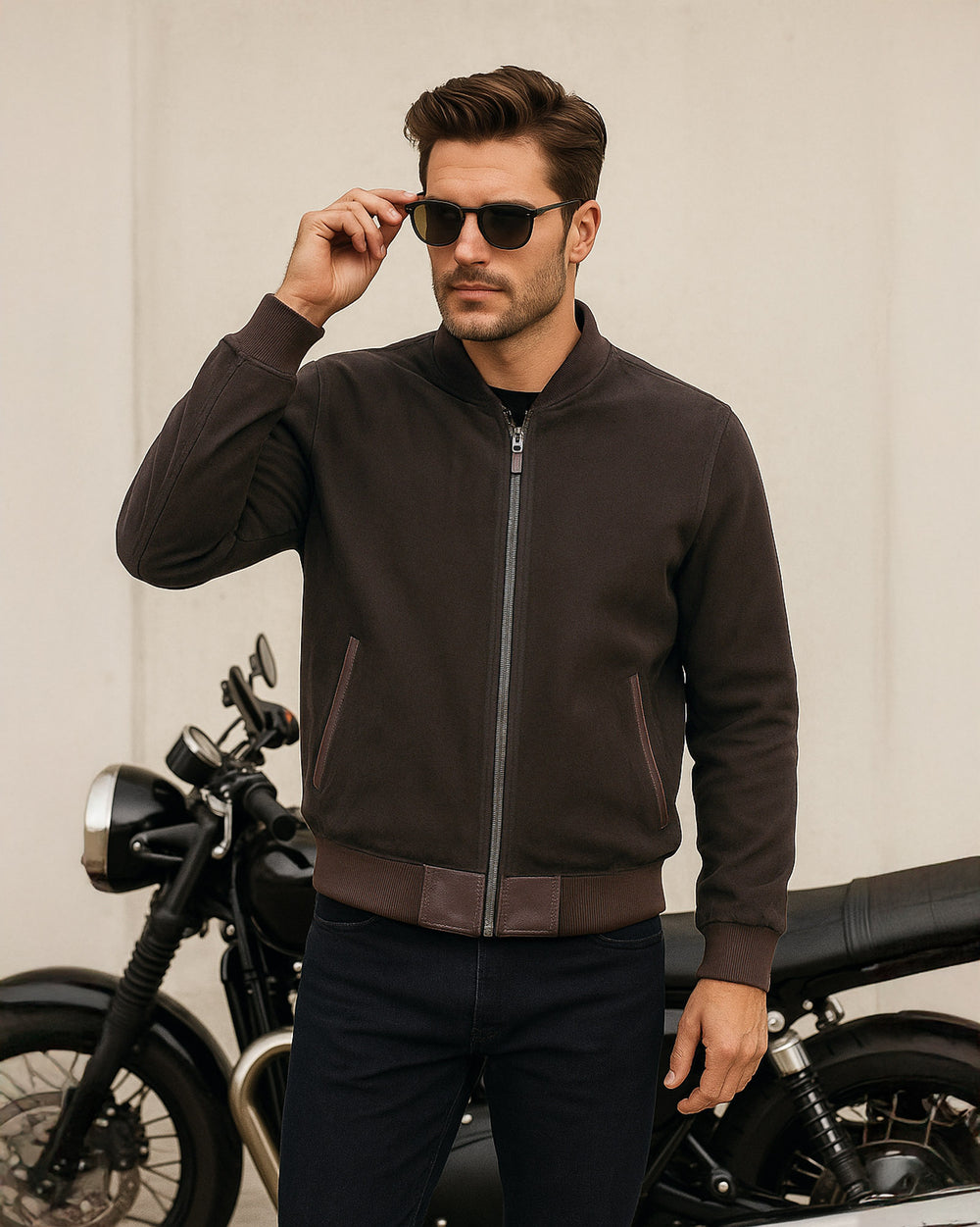 A leather jacket should sit clean on the shoulders, hug the chest lightly, and allow comfortable movement. Sleeves should reach the wrist bone. If you plan to layer a knit, consider one size up.