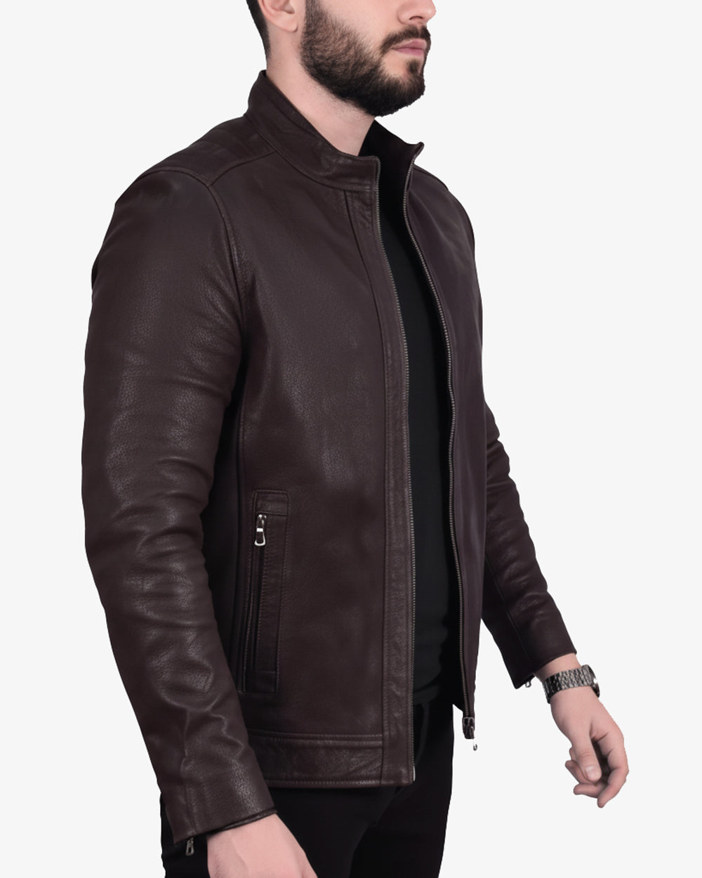 A leather jacket should sit clean on the shoulders, hug the chest lightly, and allow comfortable movement. Sleeves should reach the wrist bone. If you plan to layer a knit, consider one size up.