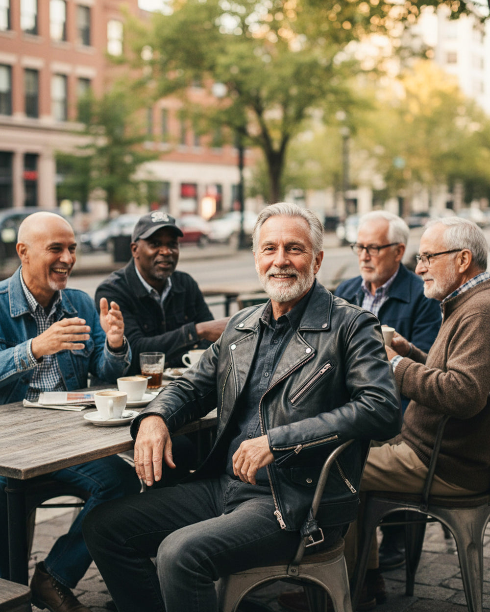 A leather jacket should sit clean on the shoulders, hug the chest lightly, and allow comfortable movement. Sleeves should reach the wrist bone. If you plan to layer a knit, consider one size up.