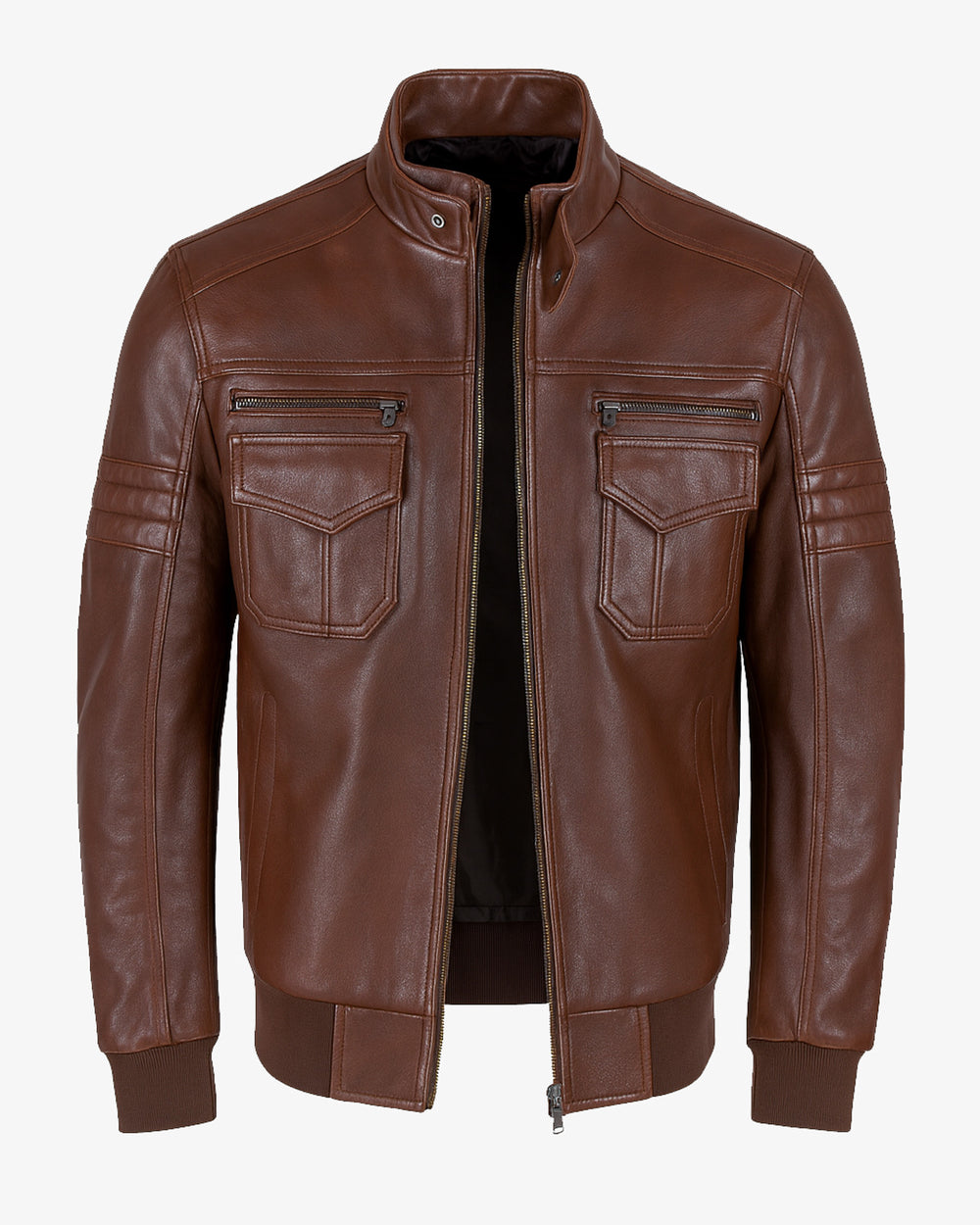 A leather jacket should sit clean on the shoulders, hug the chest lightly, and allow comfortable movement. Sleeves should reach the wrist bone. If you plan to layer a knit, consider one size up.
