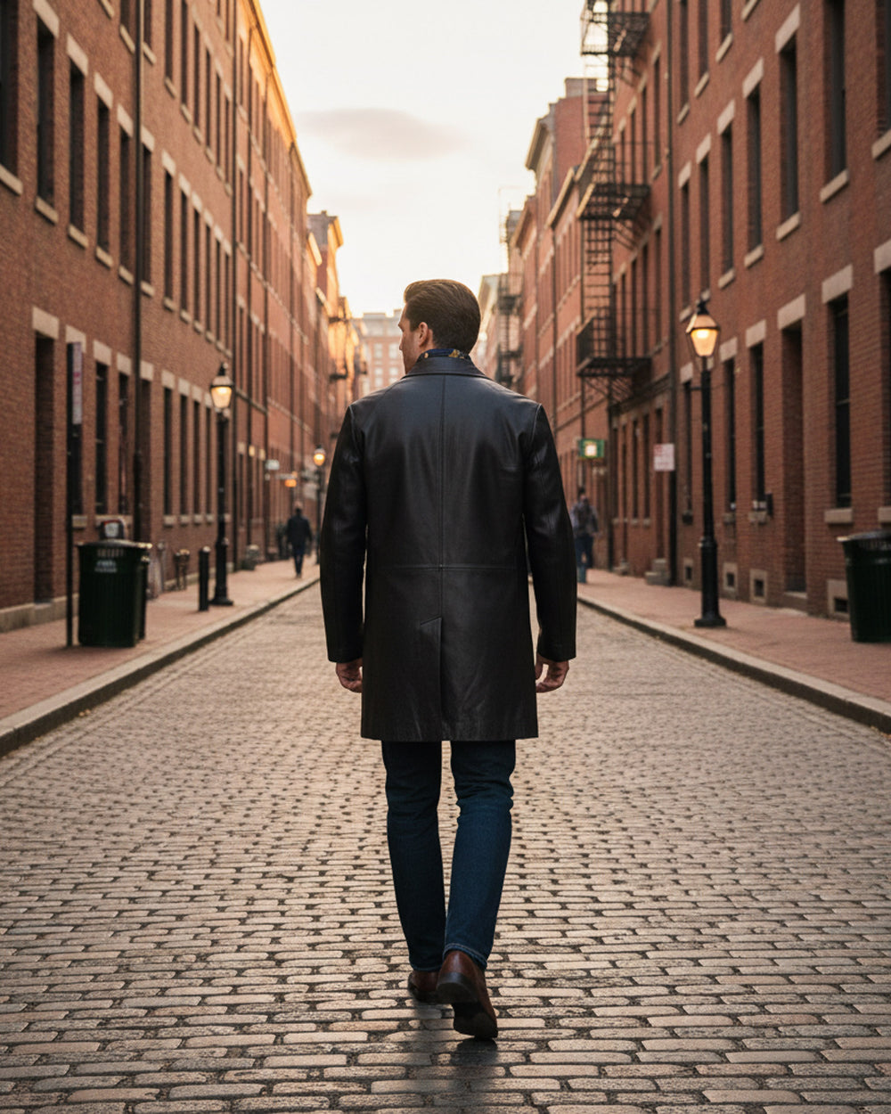 A leather jacket should sit clean on the shoulders, hug the chest lightly, and allow comfortable movement. Sleeves should reach the wrist bone. If you plan to layer a knit, consider one size up.