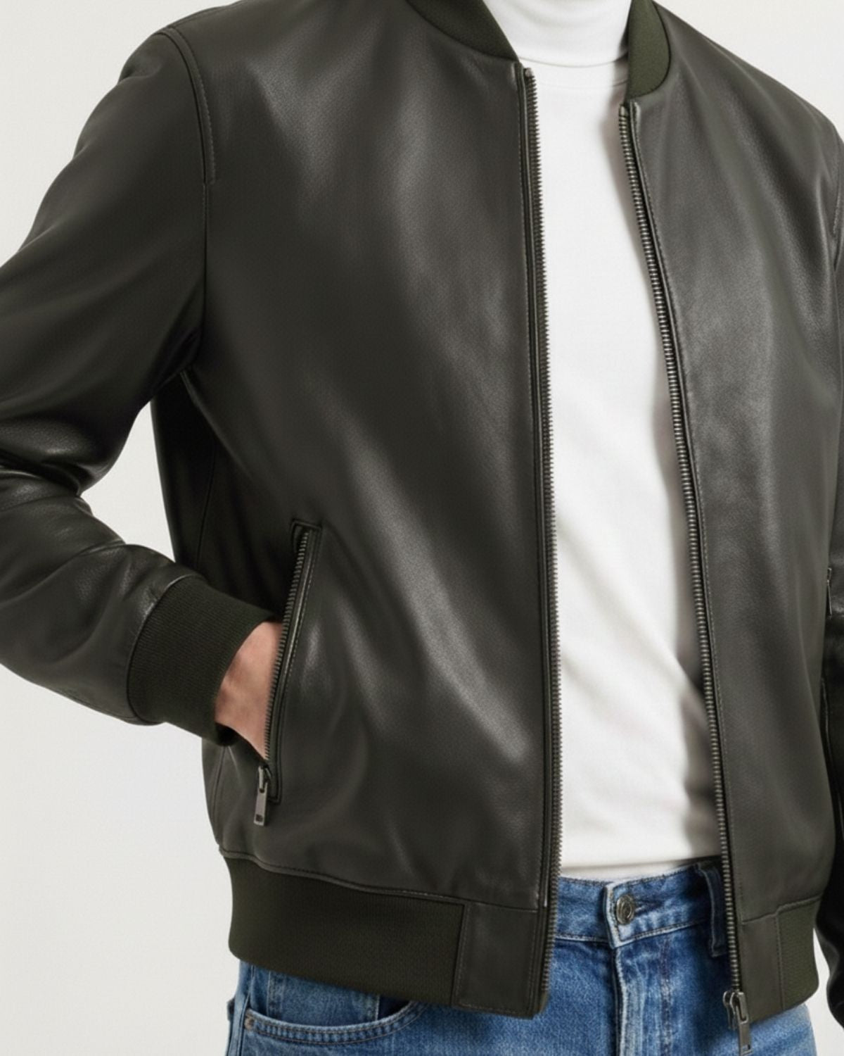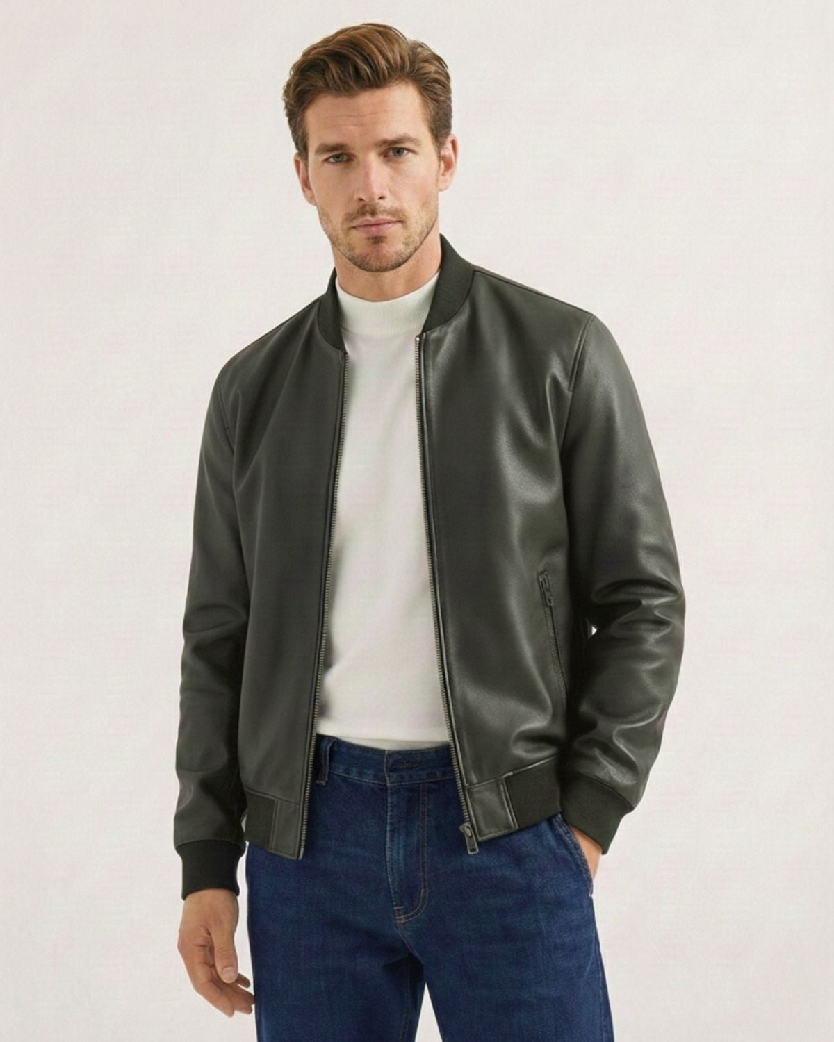 Verda - Premium Olive Leather Bomber Jacket