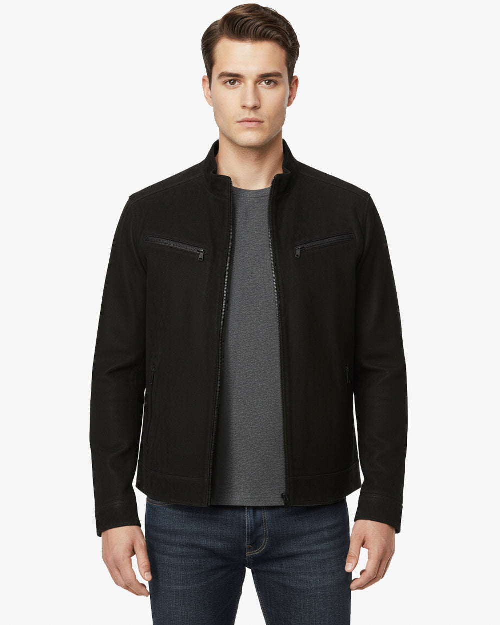 A leather jacket should sit clean on the shoulders, hug the chest lightly, and allow comfortable movement. Sleeves should reach the wrist bone. If you plan to layer a knit, consider one size up.